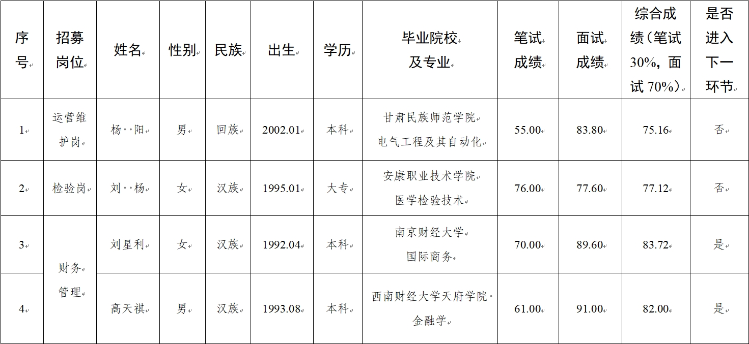 水建公司、新能源公司、醫(yī)療科技公司社會(huì)招聘人員筆試、面試成績公示