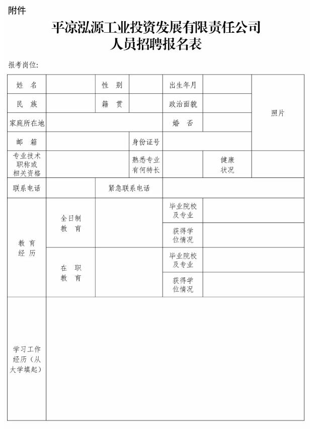 平?jīng)鲢垂I(yè)投資發(fā)展有限責任公司招聘公告