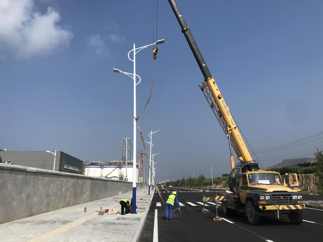 2022-08-11為了使平?jīng)龉I(yè)園區北大路(汽修路-泓源東路段)照明工程按期交付使用,宜浩園林公司增加施工人員,加大施工設備投入,不懼連日高溫天氣,加班加點(diǎn)的進(jìn)行基礎澆筑、燈頭安裝及路燈吊裝等工作,力爭早日完成安裝,達到運行條件。項目由宜浩園林公司負責實(shí)施,道路全長(cháng)2